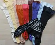 The graduated (gradient, graded) compression stockings and anti-embolism compression stockings come in knee-high and thigh-high length.[20] A meta-analysis by Sajid et al. was done to compare knee-high and thigh-high graded compression stockings in regards of deep vein thrombosis prevention in medical and surgical patients.[21] The analysis determined that there was a 6% risk of developing deep vein thrombosis when wearing knee-high stockings and 4% when wearing thigh-high stockings, but also found significant heterogeneity, and thus it concluded that there is not enough evidence that one length is superior to the other, and suggests that knee-high compression stockings should be the first choice for the deep vein thrombosis prevention in medical and surgical patients. Knee-high stockings are more comfortable, easier to apply, and wearing them increases patients' compliance with treatment.[22] Knee-high stockings are easier to size for limb measurement than thigh-high compression stockings.[9] Thigh-high compression stockings may create a tourniquet effect and cause localized restriction when rolled down.[23] A study of patients treated for post-thrombotic syndrome, performed in Italy, revealed that redness and itching of the skin was reported in 41% of patients wearing thigh-high and 27% in patients wearing knee-high compression stockings. Consequently, 22% of thigh-high wearers and 14% of knee-high wearers stopped the treatment.[24]