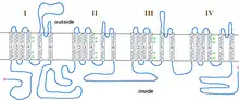 Figure 1. Schematic structure of CaV1.4 with the domains and subunits labeled.