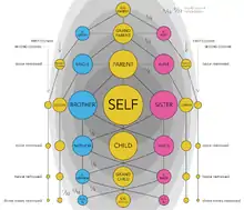 The degree of relative consanguinity can be illustrated with a consanguinity table in which each level of lineal consanguinity (generation or meiosis) appears as a row, and individuals with a collaterally consanguineous relationship share the same row.[4] The Knot System is a numerical notation that describes consanguinity using the Ahnentafel numbers of shared ancestors.[5]