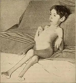 In pathology, a contracture is a shortening of muscles, tendons, skin, and nearby soft tissues that causes the joints to shorten and become very stiff, preventing normal movement.[1][2] A contracture is usually permanent, but less commonly can be temporary (such as in McArdle disease),[3] or resolve over time but reoccur later in life (such as in Bethlem myopathy 1).[4]