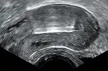 Immediately prior to insertion, the clinician will perform a pelvic exam to determine the position of the uterus.[20] After the pelvic exam, the vagina is held open with a speculum.[36] A tenaculum is used to steady the cervix and uterus.[36] Uterine sounding may be used to measure the length and direction of the cervical canal and uterus in order to decrease the risk of uterine perforation.[37] The IUD is placed using a narrow tube, which is inserted through the cervix into the uterus. Short monofilament plastic/nylon strings hang down from the uterus into the vagina. The clinician will trim the threads so that they only protrude 3 to 4 cm out of the cervix and remain in the upper vagina. The strings allow the patient or clinician to periodically check to ensure the IUD is still in place and to enable easy removal of the device.[20]