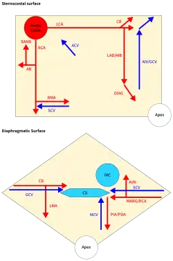 The artery that supplies the posterior third of the interventricular septum – the posterior descending artery (PDA)[3] determines the coronary dominance.[4]