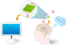 A Brain-computer interface (BCI) is a type of implant that allows for a direct connection between a patient's brain and some form of external hardware. Since the mid-1990s, the amount of research done on BCI's in both animal and human models has grown exponentially. Most brain-computer interfaces are used for some form of neural signal extraction, while some attempt to return sensation through an implanted signal.[3] As an example of signal extraction, a BCI may take a signal from a paraplegic patient's brain and use it to move a robotic prosthetic. Paralyzed patients get a great amount of utility from these devices because they allow for a return of control to the patient. Current research for brain-computer interfaces is focused on determining which regions of the brain can be manipulated by an individual. A majority of research focuses on the sensorimotor region of the brain, using imagined motor actions to drive the devices, while some studies have sought to determine if the cognitive control network would be a suitable location for implantations. This region is a "neuronal network that coordinates mental processes in the service of explicit intentions or tasks," driving the device by intent, rather than imagined motion [9] An example of returning sensation through an implanted signal would be developing a tactile response for a prosthetic limb. Amputees have no touch response in artificial limbs, but through an implant in their somatosensory cortex could potentially give them an artificial sense of touch.