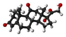Cortisone is a pregnene (21-carbon) steroid hormone. It is a naturally-occurring corticosteroid metabolite that is also used as a pharmaceutical prodrug. Cortisol is converted by the action of the enzyme corticosteroid 11-beta-dehydrogenase isozyme 2 into the inactive metabolite cortisone, particularly in the kidneys. This is done by oxidizing the alcohol group at carbon 11 (in the six-membered ring fused to the five-membered ring). Cortisone is converted back to the active steroid cortisol by stereospecific hydrogenation at carbon 11 by the enzyme 11β-Hydroxysteroid dehydrogenase type 1, particularly in the liver.