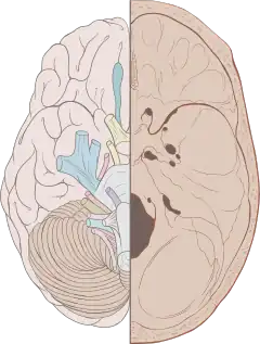 ![]() Cranial nerves as they pass through the skull base to the brain | |