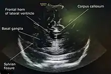 - van Wezel-Meijler G, Steggerda SJ, Leijser LM (February 2010). "Cranial ultrasonography in neonates: role and limitations". Seminars in Perinatology. 34 (1): 28–38. doi:10.1053/j.semperi.2009.10.002. PMID 20109970.