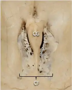 - Video (1 min 32 s). Demonstrating crista galli, cribriform plate, and olfactory foramina.