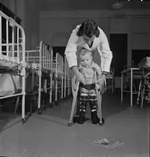 Crutches were used in ancient Egypt.[1][2] In 1917, Emile Schlick patented the first commercially produced crutch; the design consisted of a walking stick with an upper arm support. Later, A.R. Lofstrand Jr. developed the first crutches with a height-adjustable feature. Over time, the design of crutches has not changed much, and the classic design continues to be the most commonly used.[1]
