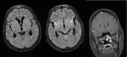 The immune reconstitution inflammatory syndrome (IRIS) has been described in those with normal immune function with meningitis caused by C. gattii and C. grubii. The increasing inflammation can cause brain injury or be fatal.[52][53][54]