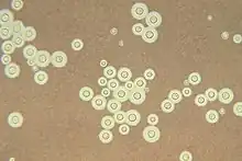 The genus was described by French mycologist Jean Paul Vuillemin in 1901, when he failed to find ascospores characteristic of the genus Saccharomyces in the yeast previously known as Saccharomyces neoformans.[1] Over 300 additional names were subsequently added to the genus, almost all of which were later removed following molecular research based on cladistic analysis of DNA sequences. As a result, some ten species are currently recognized in Cryptococcus.[2]