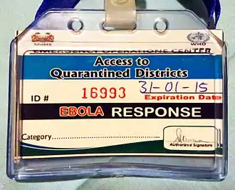 In July 2014, the Liberian Football Association made an announcement that all soccer related activities would be put on hold "indefinitely to protect players and fans."[80] In September 2014, in a joint venture between FIFA and WHO, the Antoinette Tubman Stadium was converted into an Ebola treatment center.[81]