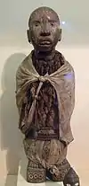 A cloth torn from the traditional wrap (chitenge) is worn, part tied around the waist and part looped under the crotch, to catch menstrual fluid.[60] Menarche (the first menstrual cycle at puberty) is traditionally treated as a sign that the girl is probably ready for sex and marriage, as well as for adult duties in the household. Initiation rites on menarche include instruction on sex and marital relations as well as on menstrual management. This is conducted by older women. It is taboo to talk about menstruation with men, or to learn from one's own mother.[61]