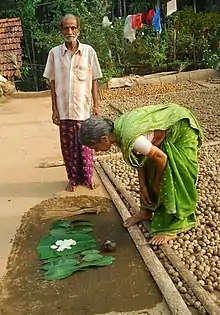 Keddaso (also transliterated Keddasa, and also known as Bhumi Puje, and in Tulu as keḍḍasa ಕೆಡ್ಡಸ), is popularly known as the "festival of worshipping Mother Earth" in the Tulu Nadu region of Karnataka in South India. It is believed that on this day, Bhoomi Devi undergoes menstruation and the day is celebrated holistically in Tulu Nadu. This is an important four-day festival celebrated in the closing days of the Tulu month Ponny (Gregorian month of February).[68]