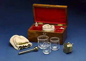 ![]() Cupping and bloodletting set, from London, England, dating from 1860–1875 | |
