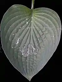 Some plants, particularly those adapted to life in damp or aquatic environments, have an extreme resistance to wetting. A well-known example is the sacred lotus.[6] This adaptation is not purely the physical and chemical effect of a waxy coating but depends largely on the microscopic shape of the surface. When a hydrophobic surface is sculpted into microscopic, regular, elevated areas, sometimes in fractal patterns, too high and too closely spaced for the surface tension of the liquid to permit any flow into the space between the plateaus, then the area of contact between liquid and solid surfaces may be reduced to a small fraction of what a continuous surface might permit.[7] The effect is to reduce wetting of the surface substantially.[8]