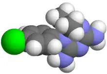 Cycloguanil is a dihydrofolate reductase inhibitor,[1] and is a metabolite of the antimalarial drug proguanil; its formation in vivo has been thought to be primarily responsible for the antimalarial activity of proguanil.[2] However, more recent work has indicated that, while proguanil is synergistic with the drug atovaquone (as in the combination Malarone), cycloguanil is in fact antagonistic to the effects of atovaquone, suggesting that, unlike cycloguanil, proguanil may have an alternative mechanism of antimalarial action besides dihydrofolate reductase inhibition.[3]