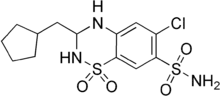 Cyclopenthiazide (trade name Navidrex) is a thiazide diuretic used in the treatment of heart failure and hypertension.