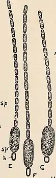 | Illustration of Cylindrospermum stagnale. h, heterocyst; sp, resting spore | |
