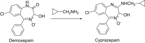 For example, heating demoxepam with N-cyclopropylmethylamine leads to amidine formation, the minor tranquilizer cyprazepam.