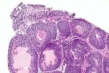 Histopathology of cystitis cystica.