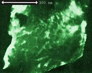 In single-crystal specimens, single-reflection dark-field images of a specimen tilted just off the Bragg condition allow one to "light up" only those lattice defects, like dislocations or precipitates, that bend a single set of lattice planes in their neighborhood. Analysis of intensities in such images may then be used to estimate the amount of that bending. In polycrystalline specimens, on the other hand, dark-field images serve to light up only that subset of crystals that are Bragg-reflecting at a given orientation.