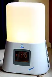 Dawn simulation generally uses light sources that range in illuminance from 100 to 300 lux, while bright light boxes are usually in the 10,000-lux range. Approximately 19%[4] of patients discontinue post-awakening bright light therapy due to inconvenience. Because the entire treatment is complete before awakening, dawn simulation may be a more convenient alternative to post-awakening bright light therapy. In terms of efficacy, some studies have shown dawn simulation to be more effective than standard bright light therapy while others have shown no difference or shown that bright light therapy is superior.[5][6] Some patients with seasonal affective disorder use both dawn simulation and bright light therapy to provide maximum effect at the start of the day.