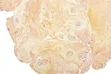 | Degenerated disc between C5 and C6 (vertebra at the top of the picture is C2), with osteophytes anteriorly (to the left) on the lower portion of the C5 and upper portion of the C6 vertebral body. | |