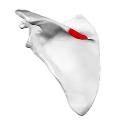 ![]() Left scapula. Posterior view. Deltoid tubercle shown in red. | |