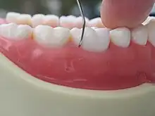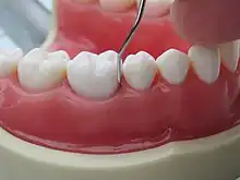 In the past it was usual for dentists to use the explorer to probe teeth for the presence of cavities. Some dental professionals have questioned this practice in twenty-first century.[1][2] The use of a sharp explorer to diagnose caries in pit and fissure sites is no longer recommended, and clinicians instead should rely on "sharp eyes and a blunt explorer or probe." Penetration by a sharp explorer causes cavitation in areas that are remineralizing or could be remineralized. Dental lesions initially develop a subsurface lesion. Early lesions may be reversed with meticulous patient self-care and application of fluoride, as long as the thin surface layer remains intact. The use of a dental explorer with firm pressure to probe suspicious areas may result in the rupture of the surface layer covering early lesions.[3] Instead, they argue that fluoride and oral hygiene should be used to remineralize the enamel and prevent it from decaying further. This continues because sometimes decay can be difficult to diagnose without tactile verification. Additionally, radiographs and other products designed to identify decay (such as measuring fluorescence from a laser) help the dental professional make a final diagnosis of tooth decay.