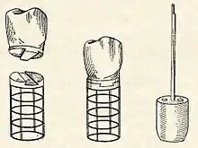 There is archeological evidence that humans have attempted to replace missing teeth with root form implants for thousands of years. Remains from ancient China (dating 4000 years ago) have carved bamboo pegs, tapped into the bone, to replace lost teeth, and 2000-year-old remains from ancient Egypt have similarly shaped pegs made of precious metals. Some Egyptian mummies were found to have transplanted human teeth, and in other instances, teeth made of ivory.[9]: 26 [68][69] Etruscans produced the first pontics using single gold bands as early as 630 BC and perhaps earlier.[70] Wilson Popenoe and his wife in 1931, at a site in Honduras dating back to 600 AD, found the lower mandible of a young Mayan woman, with three missing incisors replaced by pieces of sea shells, shaped to resemble teeth.[71] Bone growth around two of the implants, and the formation of calculus, indicates that they were functional as well as esthetic. The fragment is currently part of the Osteological Collection of the Peabody Museum of Archaeology and Ethnology at Harvard University.[9][68]