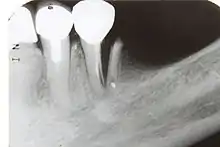 - McCabe PS, Dummer PM (February 2012). "Pulp canal obliteration: an endodontic diagnosis and treatment challenge". International Endodontic Journal. 45 (2): 177–97. doi:10.1111/j.1365-2591.2011.01963.x. PMID 21999441.