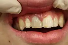 Dental trauma is most common in younger people, accounting for 17% of injuries to the body in those aged 0–6 years compared to an average of 5% across all ages.[44] It is more frequently observed in males compared to females.[45] Traumatic dental injuries are more common in permanent teeth compared to deciduous teeth and usually involve the front teeth of the upper jaw.[46]