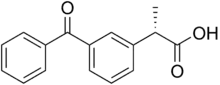 Dexketoprofen is the (S)-enantiomer of ketoprofen. Technically it is a chiral switch of (±)-ketoprofen. The switch was done for a faster onset of action, a better therapeutic value.[3]