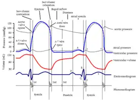 In diastolic heart failure, the volume of blood contained in the ventricles during diastole is lower than it should be, and the pressure of the blood within the chambers is elevated.[29]