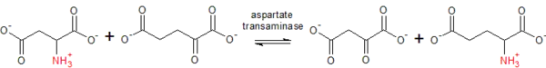 - Aspartate + α-ketoglutarate ⇌ Oxaloacetate + Glutamate