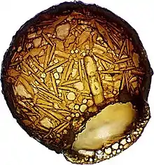 The presence of a test in Difflugia allowed them to be extremely well-preserved in fossils.[8] Difflugia are part of one of the oldest lineages of eukaryotes based on fossile records which date back 750Mya. The only structure of the organisms that was able to be preserved in the fossils was the test. Therefore there have been issues differentiating genera such as Cryptodifflugia from Difflugia based on fossil record alone.[9] Another problem arise from the distortion of test and changes to the xenosomes that makes genera difficult to identify from the testate amoebae fossil specimen alone.