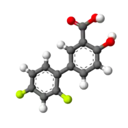 Diflunisal is a salicylic acid derivative with analgesic and anti-inflammatory activity.[1] It was developed by Merck Sharp & Dohme in 1971, as MK647, after showing promise in a research project studying more potent chemical analogs of aspirin.[2] It was first sold under the brand name Dolobid, marketed by Merck & Co., but generic versions are now widely available. It is classed as a nonsteroidal anti-inflammatory drug (NSAID) and is available in 250 mg and 500 mg tablets.