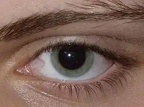 Dilated fundus examination or dilated-pupil fundus examination (DFE) is a diagnostic procedure that employs the use of mydriatic eye drops (such as tropicamide) to dilate or enlarge the pupil in order to obtain a better view of the fundus of the eye.[1] Once the pupil is dilated, examiners use ophthalmoscopy (funduscopy) to view the eye's interior, allowing assessment of the retina, optic nerve head, blood vessels, and other features. They also often use specialized equipment such as a fundus camera. DFE has been found to be a more effective method for evaluation of internal ocular health than non-dilated examination.[2] It is frequently performed by ophthalmologists and optometrists as part of an eye examination.