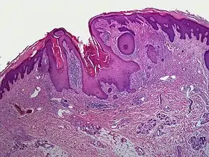 A dilated pore, also known as a dilated pore of Winer, is a cutaneous condition characterized by a solitary, prominent, open comedo on the face or upper trunk of an individual.[1]: 675 Louis H. Winer is credited with discovering the dilated pore. [2][3]