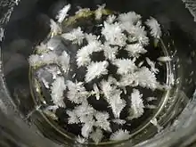 A standard dose for vaporized DMT is 20–60 milligrams, depending highly on the efficiency of vaporization as well as body weight and personal variation.[59] In general, this is inhaled in a few successive breaths, but lower doses can be used if the user can inhale it in fewer breaths (ideally one). The effects last for a short period of time, usually 5 to 15 minutes, dependent on the dose. The onset after inhalation is very fast (less than 45 seconds) and peak effects are reached within a minute. In the 1960s, DMT was known as a "businessman's trip" in the US because of the relatively short duration (and rapid onset) of action when inhaled.[60] DMT can be inhaled using a bong, typically when sandwiched between layers of plant matter, using a specially designed pipe, or by using an e-cigarette once it has been dissolved in propylene glycol and/or vegetable glycerin.[61] Some users have also started using vaporizers meant for cannabis extracts ("wax pens") for ease of temperature control when vaporizing crystals. A DMT-infused smoking blend is called Changa, and is typically used in pipes or other utensils meant for smoking dried plant matter.