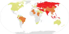 In 2015, 4,500 cases were officially reported worldwide, down from nearly 100,000 in 1980.[3] About a million cases a year are believed to have occurred before the 1980s.[2] Diphtheria currently occurs most often in sub-Saharan Africa, India, and Indonesia.[2][6] In 2015, it resulted in 2,100 deaths, down from 8,000 deaths in 1990.[4][7] In areas where it is still common, children are most affected.[2] It is rare in the developed world due to widespread vaccination but can re-emerge if vaccination rates decrease.[2][8] In the United States, 57 cases were reported between 1980 and 2004.[1] Death occurs in 5% to 10% of those diagnosed.[1] The disease was first described in the 5th century BC by Hippocrates.[1] The bacterium was identified in 1882 by Edwin Klebs.[1]