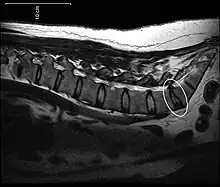 A disc protrusion is a medical condition that can occur in some vertebrates, including humans, in which the outermost layers of the anulus fibrosus of the intervertebral discs of the spine are intact but bulge when one or more of the discs are under pressure.