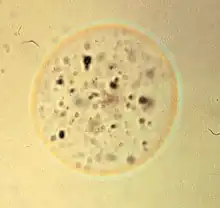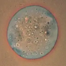 The dispersion staining is an analytical technique used in light microscopy that takes advantage of the differences in the dispersion curve of the refractive index of an unknown material relative to a standard material with a known dispersion curve to identify or characterize that unknown material. These differences become manifest as a color when the two dispersion curves intersect for some visible wavelength. This is an optical staining technique and requires no stains or dyes to produce the color. Its primary use today is in the confirmation of the presence of asbestos in construction materials[1][2][3] but it has many other applications.[4][5][6][7][8][9]
