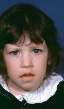 | A 9-year-old girl with phenotypic features of De Grouchy syndrome TYPE I (Monosomy 18p or deletion 18p or 18p-). This image does not show the phenotypic features of distal 18q (de Grouchy Type 2), which are quite distinct from those of Monosomy 18p | |