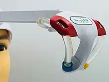 The DizzyFIX is a home medical device designed to assist in the treatment of benign paroxysmal positional vertigo (BPPV) and its associated vertigo.[1] The device is a head-worn representation of semi-circular canals. The device is filled with fluid and a particle representing the otoconia (loose hard particles) associated with BPPV. The device works like a visual set of instructions and guides the user through the treatment maneuver for BPPV. This maneuver is called the particle repositioning maneuver or Epley maneuver.