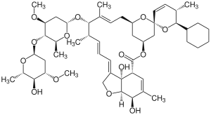 It is used for the treatment and control of internal parasitosis (gastrointestinal and pulmonary nematodes), ticks and mange (and other ectoparasites). Doramectin is a derivative of ivermectin. Similarly to other drugs of this family, it is produced by fermentation by selected strains of Streptomyces avermitilis.[1][2][5] Its spectrum includes: Haemonchus, Ostertagia, Trichostrongylus, Cooperia, and Oesophagostomum species and Dictyocaulus viviparus, Dermatobia hominis, Boophilus microplus, and Psoroptes bovis, among many other internal and external parasites. It is available as an injection and as a topical solution.[1][2]
