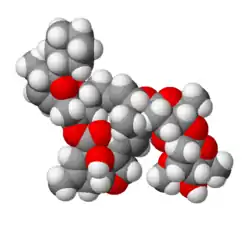 Doramectin, sold under the brand name Dectomax among others, is a veterinary medication approved by the US Food and Drug Administration (FDA) for the treatment of parasites such as gastrointestinal roundworms, lungworms, eyeworms, grubs, sucking lice, and mange mites in cattle.[1][2] It is available as a generic medication.[3] It is available as a combination with levamisole under the brand name Valcor.[4]