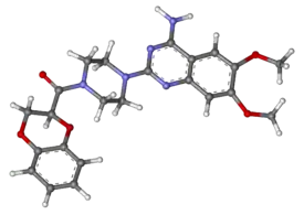 Common side effects include dizziness, sleepiness, swelling, nausea, shortness of breath, and abdominal pain.[2] Severe side effects may include low blood pressure with standing, an irregular heart beat, and priapism.[2][3] It is a α1-selective adrenergic blocker in the quinazoline class of compounds.[2]