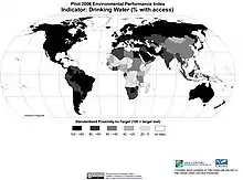 About 1 to 2 billion people lack safe drinking water.[5] Water can carry vectors of disease. More people die from unsafe water than from war, then-U.N. secretary-general Ban Ki-moon said in 2010.[6] Third world countries are most affected by lack of water, flooding, and water quality. Up to 80 percent of illnesses in developing countries are the direct result of inadequate water and sanitation.[7] According to a report by UNICEF and UNESCO, Finland has the best drinking water quality in the world.[8][9][10][11]