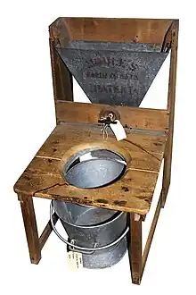 A container-based toilet or bucket toilet, another type of dry toilet.